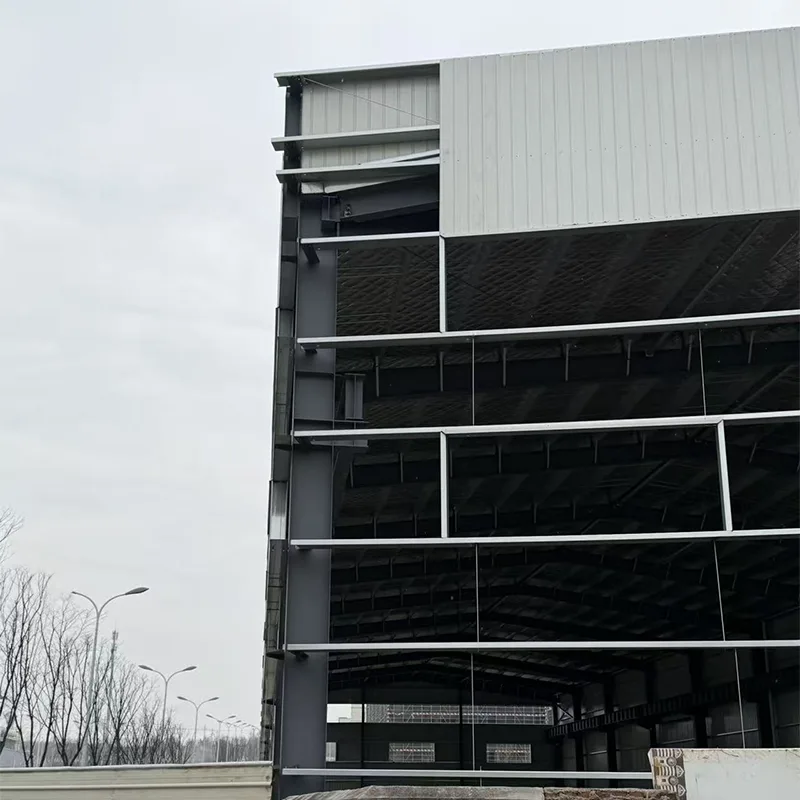 คลังสินค้าโครงสร้างเหล็กที่มีความสูงชัดเจนสูงเป็นระบบอาคารที่ทันสมัย มีประสิทธิภาพ และคุ้มค่า ออกแบบมาสำหรับการขนส่ง การผลิต การจัดเก็บ การจัดจำหน่าย และการใช้งานในเวิร์กช็อป ส่วนประกอบหลักทั้งหมด รวมถึงโครงพอร์ทัล เสา คาน ค้ำยัน แผ่นหลังคาและผนัง ประตู หน้าต่าง และอุปกรณ์เสริมต่างๆ ได้รับการประกอบขึ้นสำเร็จรูปจากโรงงานและประกอบที่ไซต์งานผ่านการเชื่อมต่อแบบสลักเกลียว