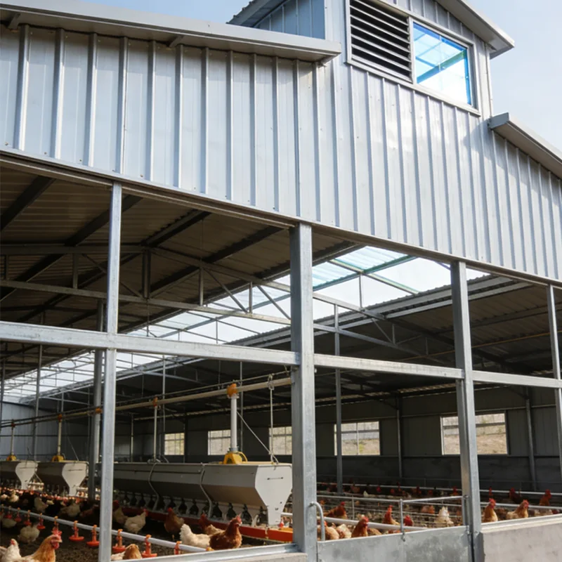 โรงเรือนสัตว์ปีกโครงสร้างเหล็กสำเร็จรูปของเราเป็นโซลูชันการเพาะพันธุ์ที่เน้นสุขอนามัยที่มีประสิทธิภาพสูง ซึ่งออกแบบมาสำหรับการเลี้ยงสัตว์ปีกแบบเข้มข้นสมัยใหม่ ด้วยการบูรณาการวิศวกรรมเหล็กสำเร็จรูปเข้ากับการออกแบบเฉพาะสำหรับสัตว์ปีก โดยมีคุณสมบัติในการประกอบที่รวดเร็ว ความเสถียรของโครงสร้างที่ดีเยี่ยม และการควบคุมสิ่งแวดล้อมที่เหมาะสมที่สุด สร้างที่อยู่อาศัยที่ปลอดภัยและสะดวกสบาย ซึ่งจะช่วยส่งเสริมสุขภาพของไก่และประสิทธิภาพการผลิต โครงเหล็กน้ำหนักเบาแต่แข็งแกร่งรองรับการแบ่งพื้นที่อย่างยืดหยุ่น ในขณะที่คุณสมบัติป้องกันการกัดกร่อน ป้องกันแบคทีเรีย และทำความสะอาดง่ายตรงตามข้อกำหนดการป้องกันการแพร่ระบาดของสัตว์ปีกที่เข้มงวด เหมาะสำหรับไก่เนื้อ ไก่ไข่ พ่อพันธุ์แม่พันธุ์ และสัตว์ปีกอื่นๆ เป็นตัวเลือกที่เหมาะสำหรับฟาร์มขนาดเล็ก ขนาดกลาง และขนาดใหญ่ที่กำลังมองหาสิ่งอำนวยความสะดวกในการเพาะพันธุ์ที่เชื่อถือได้และบำรุงรักษาต่ำ