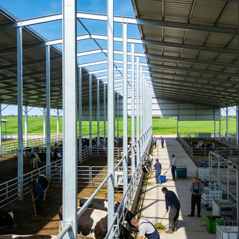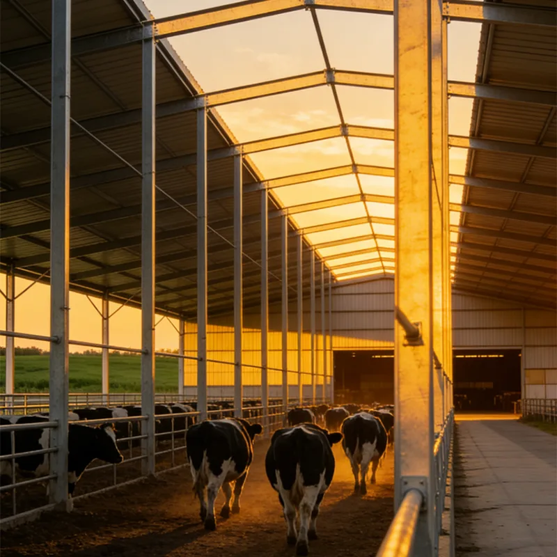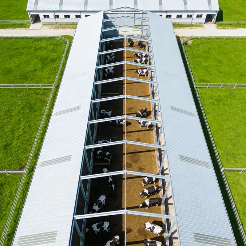 โรงเรือนโคและโรงโคนมโครงเหล็กของเราเป็นโรงเพาะพันธุ์มืออาชีพ ทนทาน และคุ้มราคา ออกแบบมาเป็นพิเศษสำหรับฟาร์มโคและการผลิตโคนมสมัยใหม่ ด้วยโครงสร้างเหล็กที่มั่นคง การระบายอากาศที่ดี ฉนวนกันความร้อนที่ดีเยี่ยม และคุณสมบัติทำความสะอาดง่าย ทำให้มีสภาพแวดล้อมที่ปลอดภัย สบาย และดีต่อสุขภาพสำหรับโคเนื้อ โคนม และปศุสัตว์อื่นๆ